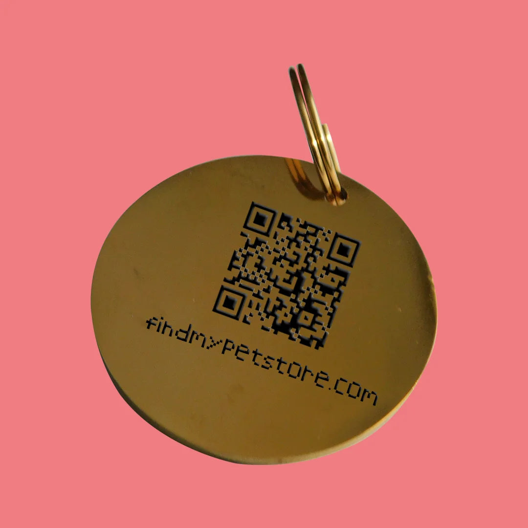 Elegancia y protección en un solo accesorio. Con su hermoso acabado dorado, esta Placa QR Inteligente es más que un accesorio: es un seguro de vida para tu mascota. Resistente, duradera y con un diseño premium que nunca pasará de moda.